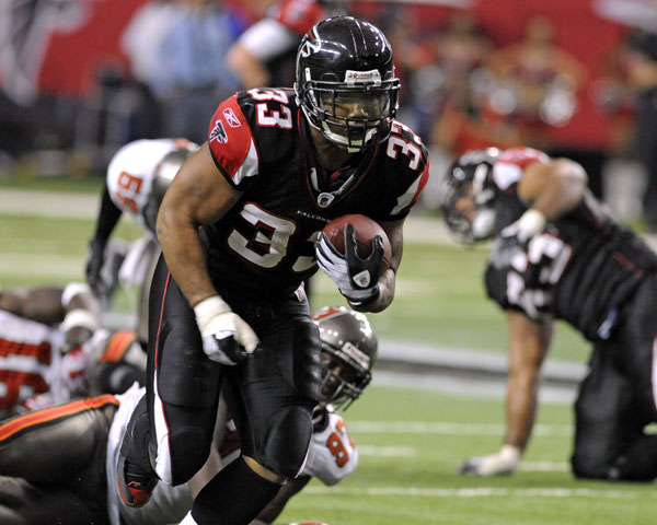 The Bucs showed a different face wich was more in with their reputation. But their ground defense was permeable once again. After having allowed about 300 yards to Carolina's Smash & Dash, Micheal Turner ran for 152 yards in 32 carries and add 1 touchdown against Bucs' defense. Turner (photo below n°33), after being LaDainian Tomlinson's backup with the chargers, is now the primary halfback and he can shows all of his skills.